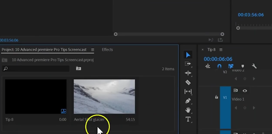 如果项目板里有很多素材,很难看清楚哪些素材是已经用过的,哪些是没用过的话,除了可以点击右下角的蓝色标志处理,还可以指定任一素材右击选择隐藏,这样的话在后期制作时对素材的筛选会更加一目了然,Ctrl+H键还能够快速地隐藏和取消隐藏素材。