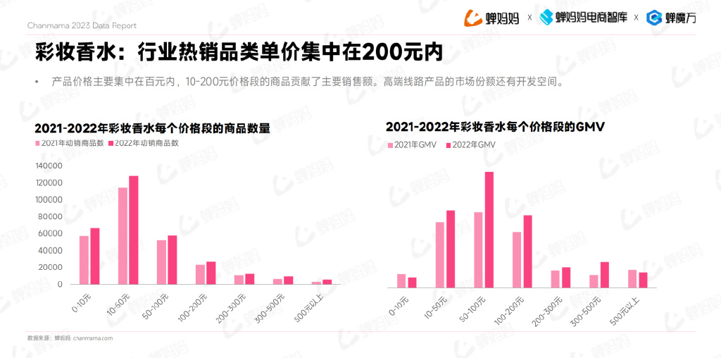 产品价格主要集中在百元内,10-200元价格段的商品贡献了主要销售额。高端线路产品的市场份额还有开发空间。